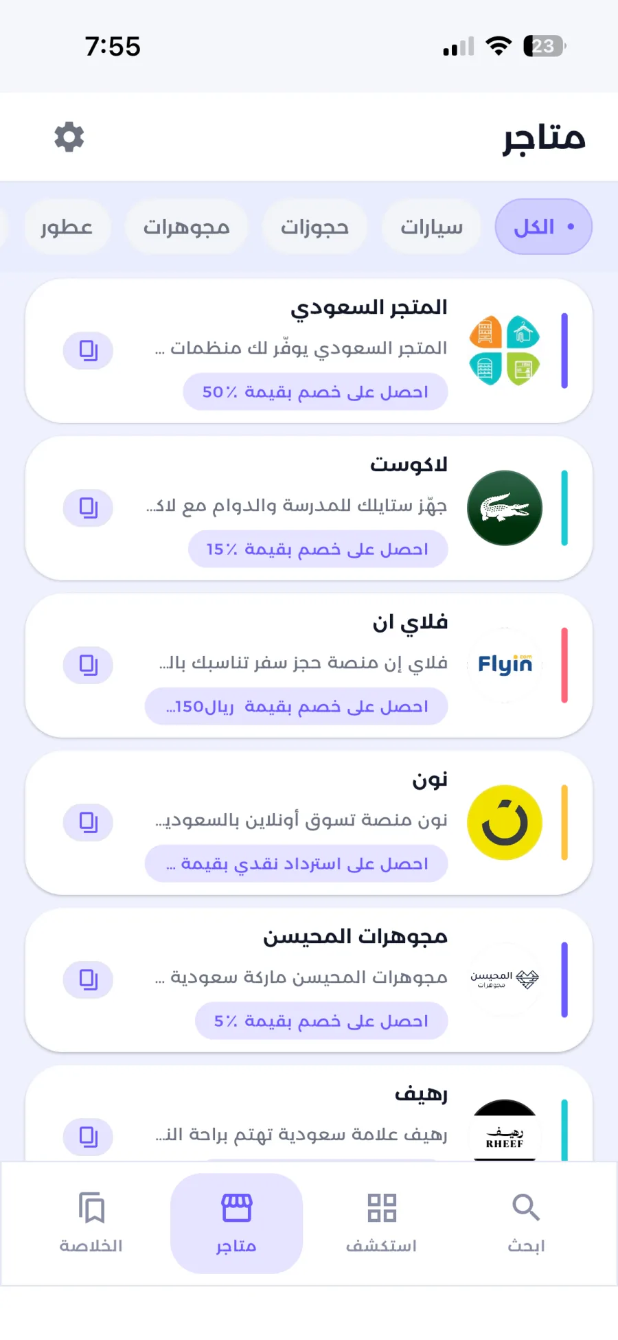 خصومات متنوعة على متاجر يومية ومفضلة، حتى تزيد فرصتك في اختيار الكوبون الأنسب لطلبك.